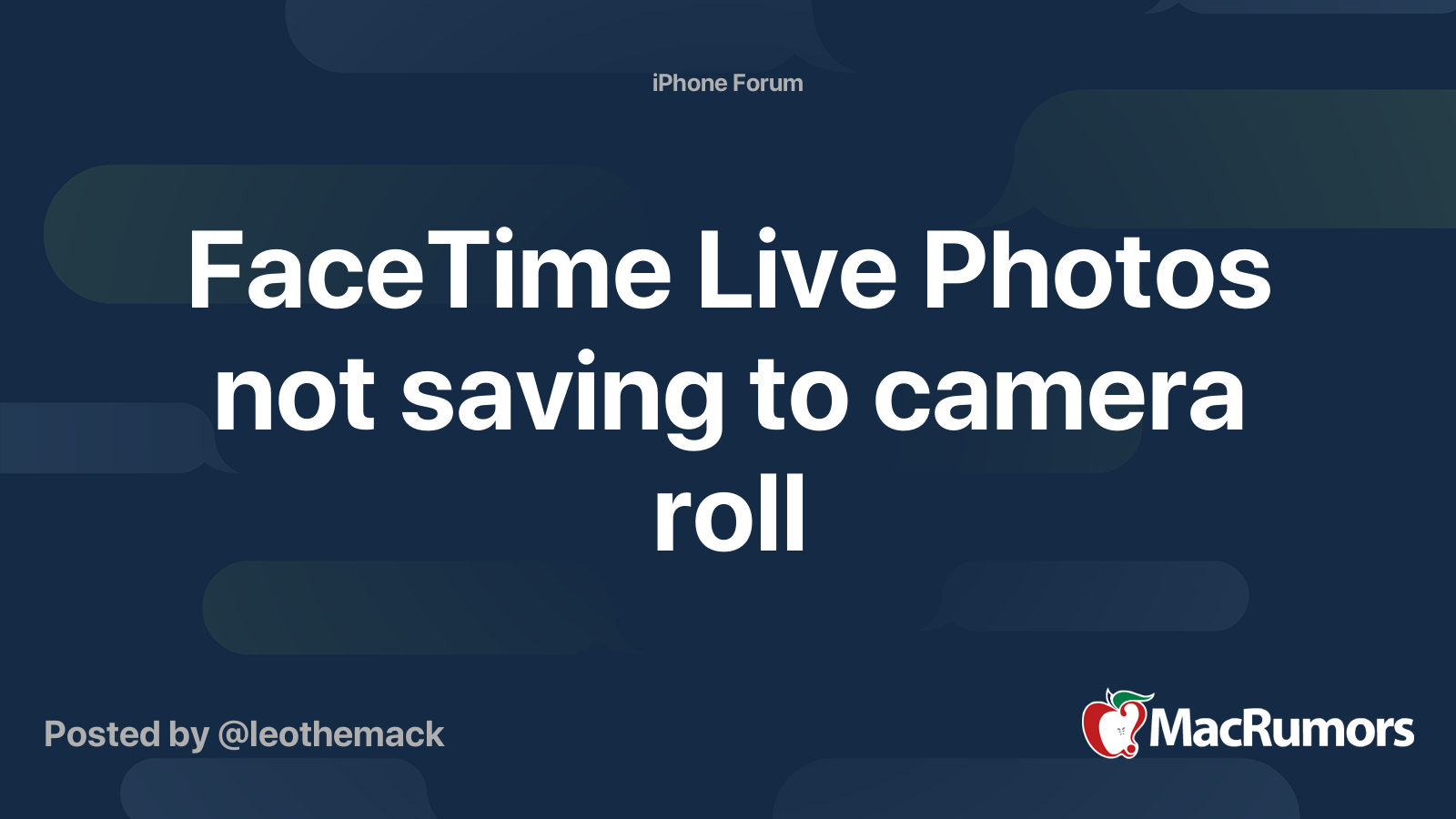 Facetime Live Photos Not Saving To Camera Roll Macrumors Forums